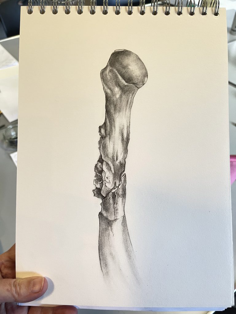 Sketch of diseased bone from a medical art session at Surgeons’ Hall Museum.